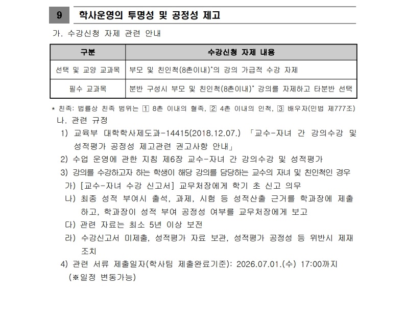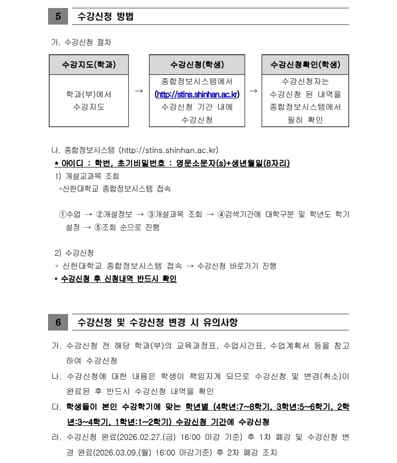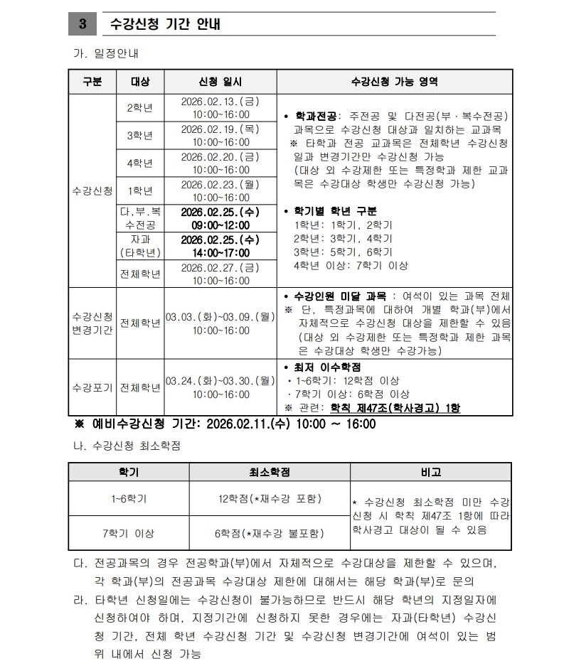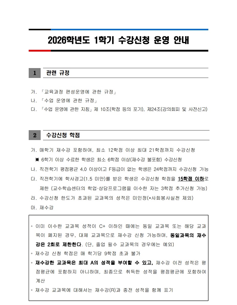 [학사팀/수업] 2026학년도 1학기 수강신청 운영 계획 안내