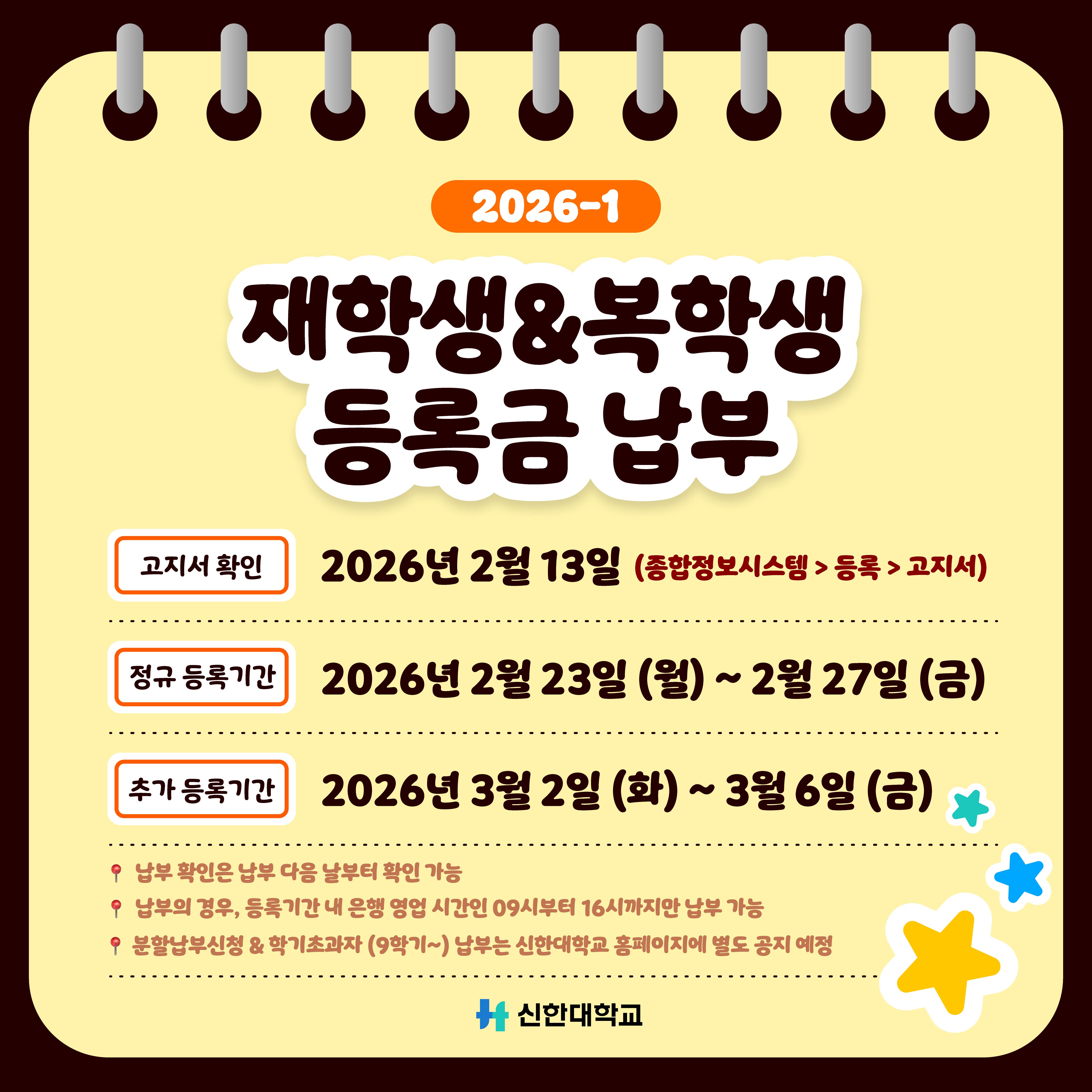* 등록금 고지서 출력: 2026. 02. 13.(금) 17시 부터