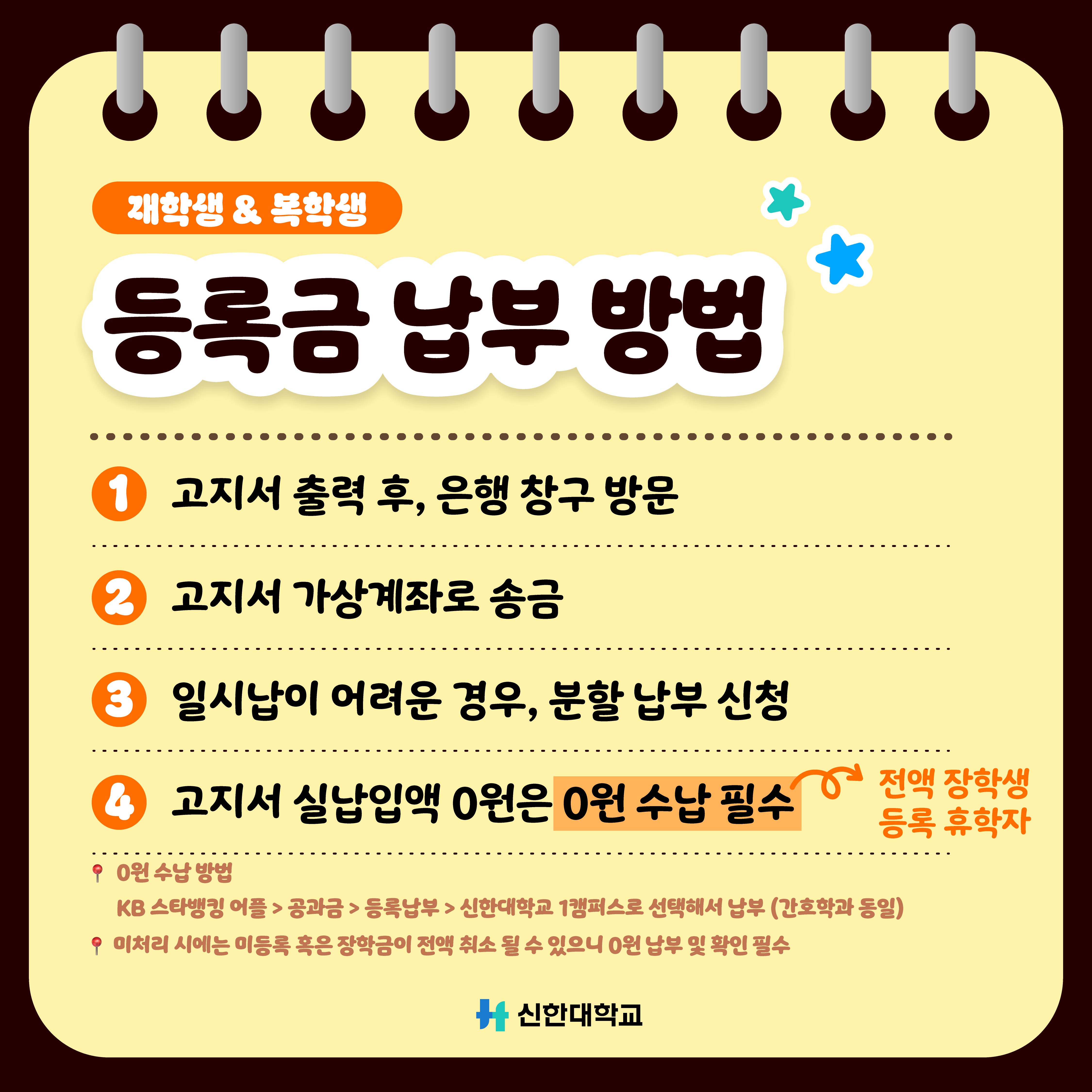 다. 고지서 “실납입액이 0원”인 경우(★일부 복학생 및 ★전액장학생 해당)